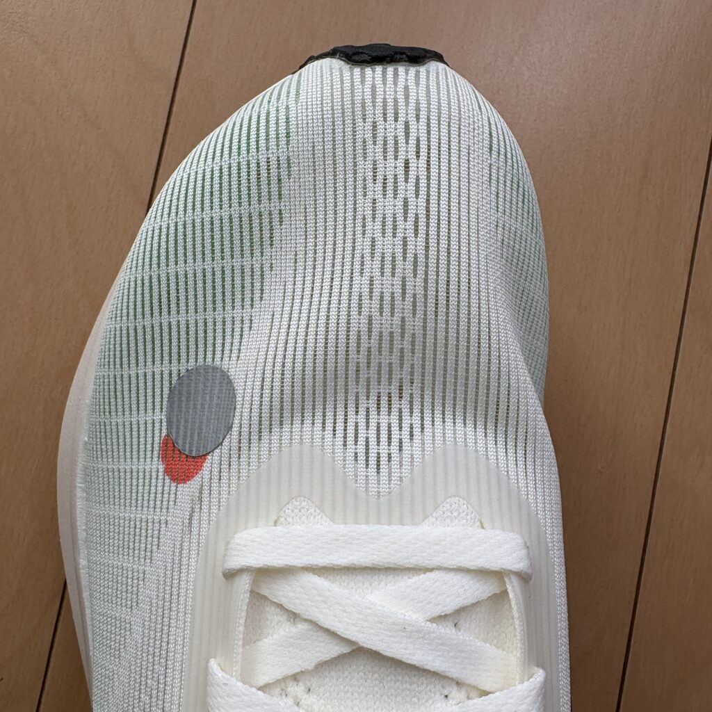 しかし、ホールド感はやや弱め。走っていると気にならないのですが、履いた時は踵が抜けそうな感覚がありました。